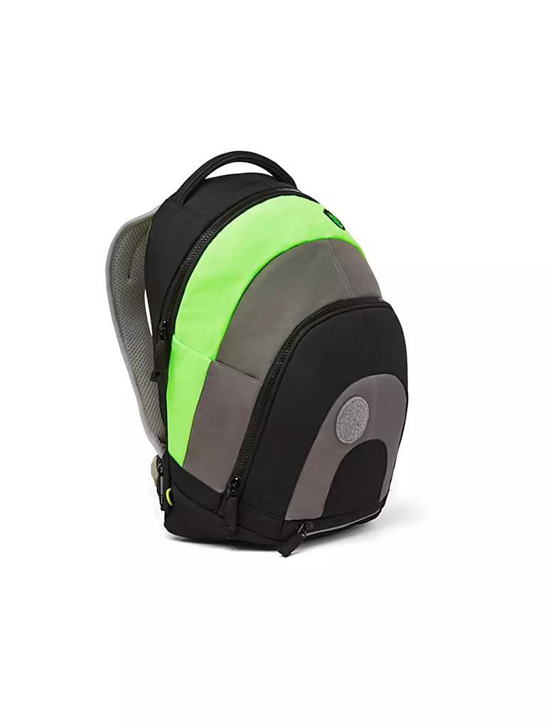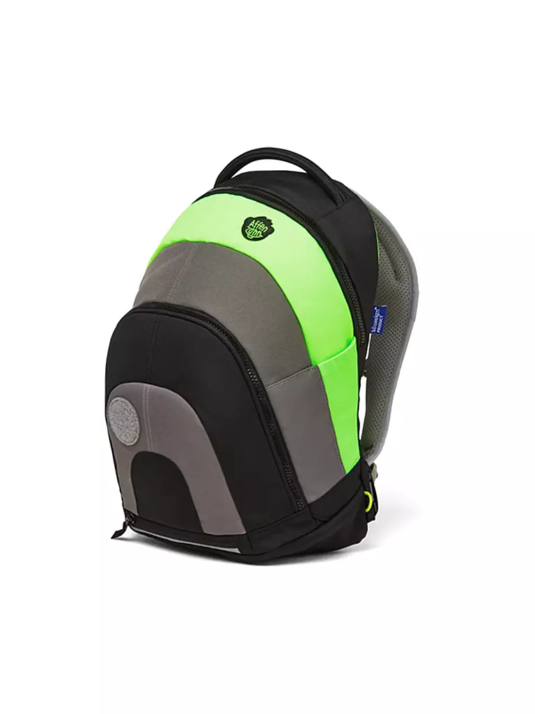 Der Rucksack ist mit Reflektoren ausgestattet, welche das Licht im Dunkeln reflektieren.