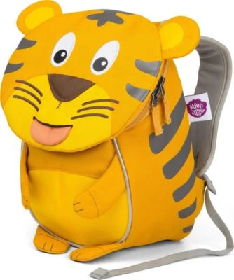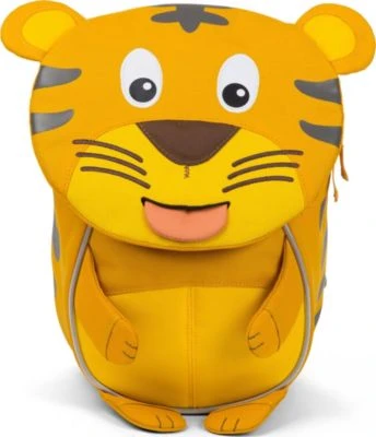 Affenzahn Kinder Rucksack Timmy Tiger Gelb mit herausziehbarer Zunge mit Namensschild in Sichthülle (auch für kleines Foto o.Ä.); Maße: ca. 28 x 23 x 12 cm (HxBxT); RV-Hauptfach mit gepolsterter Rückwand und 1 offenen Steckfach mit Gummizug; 1 Trageschlaufe; 2 Schultergurte gepolstert/ verstellbar mit Reflektoren; zu 50% aus recycelten PET-Flaschen