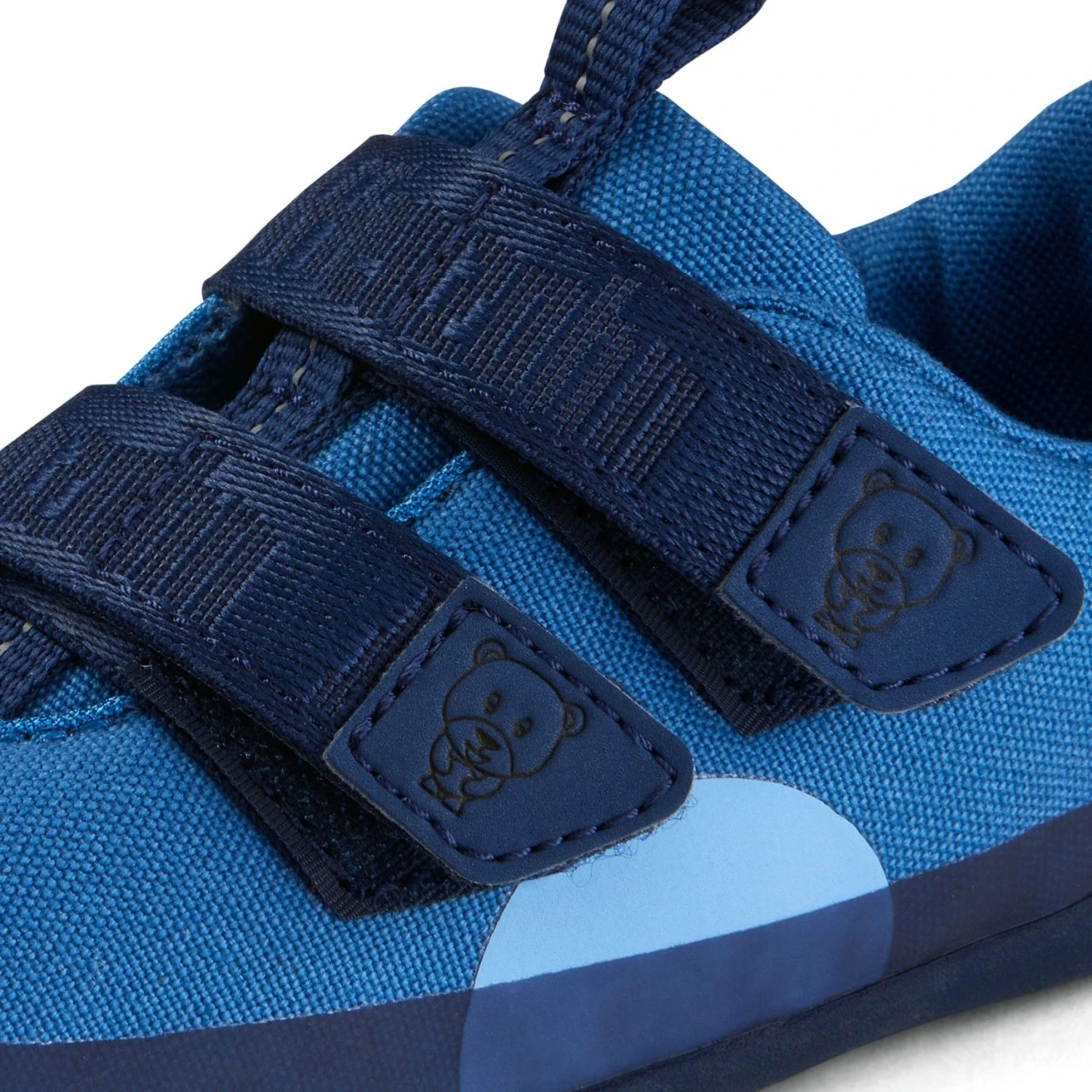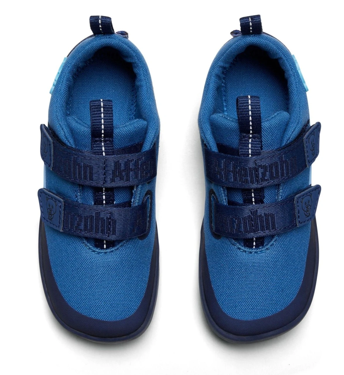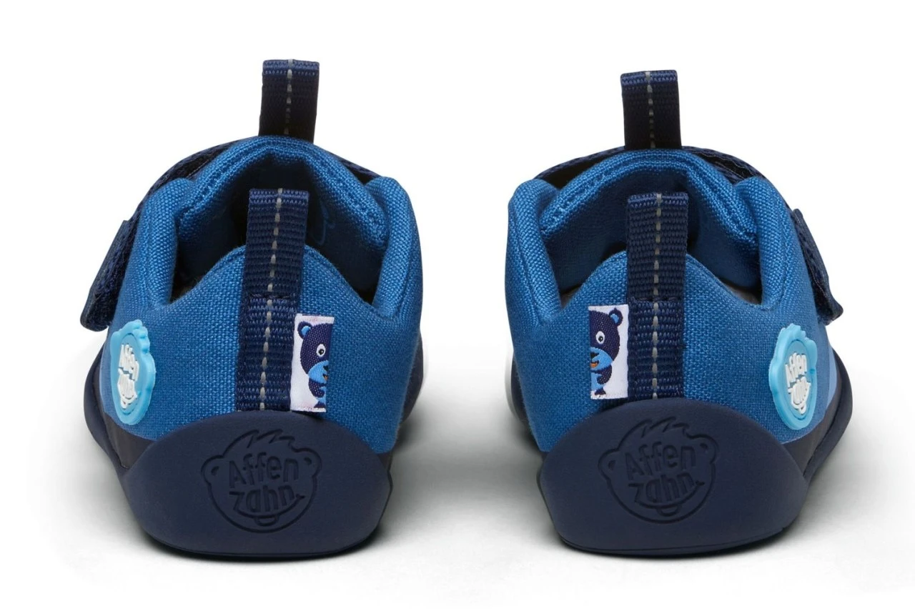 Die sommerlich leichten Affenzahn Barfußschuhe Lucky Bär in blau sind sehr bequem geschnitten . Durch den praktischen Klettverschluss sind die Baumwoll-Sneaker perfekt an die individuelle Fußform anpassbar. Die flexible Minimalsohle schützt die Fußsohle, engt aber nicht ein. Ideal für den Kindergarten, für die Kita und zum klettern, hüpfen, springen und toben. Prima geeignet auch als Lauflernschuh für die ersten Schritte draußen. Höchstmöglicher Fuß-Komfort für große und kleine Kinder, ein Gefühl wie barfuß laufen.